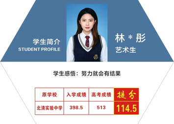 黑(hēi)馬優秀學子(zǐ):林(lín)*彤 原©∑≠&學校(xiào)-北(běi)清實驗中學 藝術(shù)生(shēng),&>提分(fēn)114.5,【個(gè)人(rén)感悟】努力就(jiù)會☆∏&(huì)有(yǒu)結果...